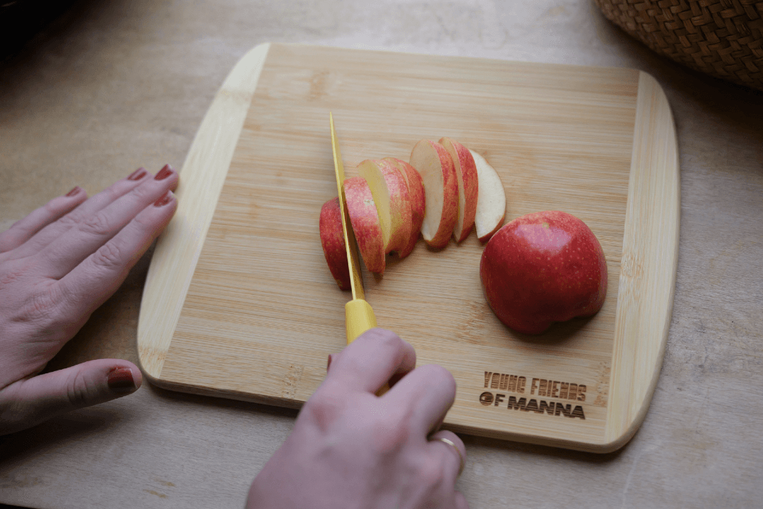 -A Young Friends of MANNA cutting board and an invite to our annual Young Friendsgiving event in November